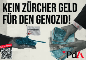 Kein Zürcher Geld für den Genozid – nicht in meinem Namen, nicht mit meinem Geld! «Diese indirekte Mitfinanzierung des Genozids in Palästina durch die PKZH muss sofort gestoppt werden», fordert die PdAZ in ihrer Petition. Unterschreibt sie alle.